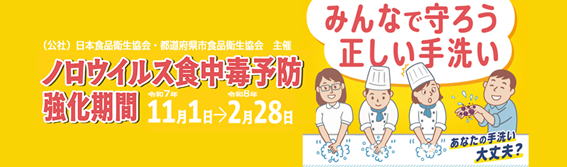毎年11月1日~2月28日は「ノロウイルス食中毒予防強化期間」です。